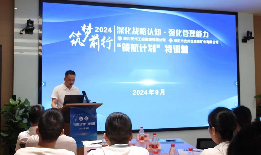 為進一步加強企業(yè)中高層管理人員隊伍建設,提升企業(yè)內部管理水平與經(jīng)營管理能力。9月13日—9月14日,綿陽安州礦產(chǎn)資源集團有限公司聯(lián)合四川安州工投集團有限公司開啟為期兩天的“領航計劃”特訓營培訓班。參加本次培訓的人員共計59人,包含公司和工投集團的中高層管理人員、基層管理人員和部分職工代表。公司工會主席、副總經(jīng)理楊婷婷主持培訓會議,公司黨支部書記、董事長袁波作開班致辭,工投集團黨總支書記、董事長王亭剛作結業(yè)講話。
