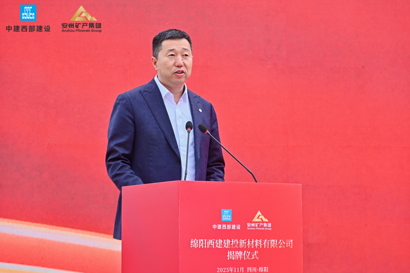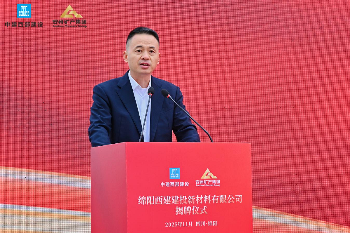 11月18日,綿陽安州礦產(chǎn)資源集團有限公司(簡稱“安礦集團”)與中建西部建設集團第一有限公司(簡稱“中建西部一公司”)共同出資設立的綿陽西建建投新材料有限公司(簡稱“西建建投”)在安州正式揭牌。此次揭牌是央地國企強強聯(lián)手、優(yōu)勢互補的合作典范,不僅為綿陽綠色建材產(chǎn)業(yè)發(fā)展與“無廢城市”建設注入強勁動力,也開啟了雙方共創(chuàng)共贏的嶄新篇章。中建西部一公司黨委書記、董事長徐志飛,安礦集團黨支部書記、董事長袁波出席揭牌儀式并致辭。